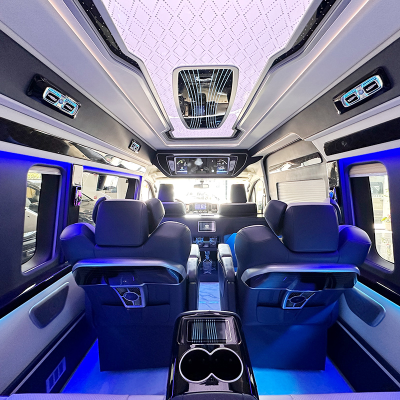 上海丰田海狮商务车黑色外观七座半隔断设计